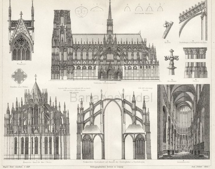 Köln Katedrali gotik mimarinin görkemli örneklerinden biridir. Temel taşı 1248 yılında Başpiskopos Konrad von Hochstaden tarafından atılmıştır. Ancak siyasi ve ekonomik sebeplerle yapımı 1880 yılında tamamlanmıştır.